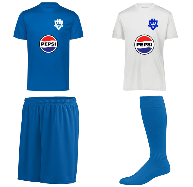 2025 Spring Season package consists of 1 home jersey, 1 away jersey, 1 pair blue shorts and 1 pair of blue socks.
